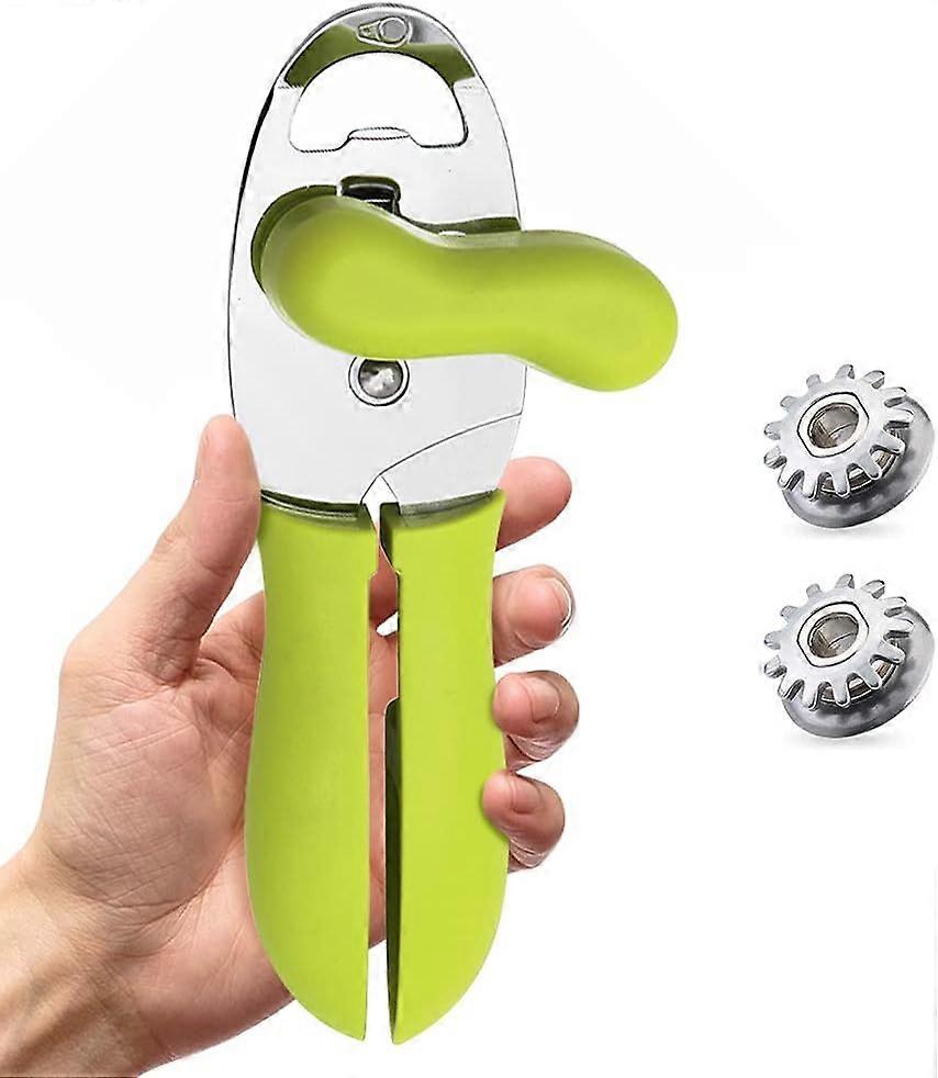 Tin Opener Can Opener Tin Openers That Work , 4-in-1 Powerful& Convenient Stainless Steel Tin Openers Manual with Another 2 Replaceable Blades (Green)