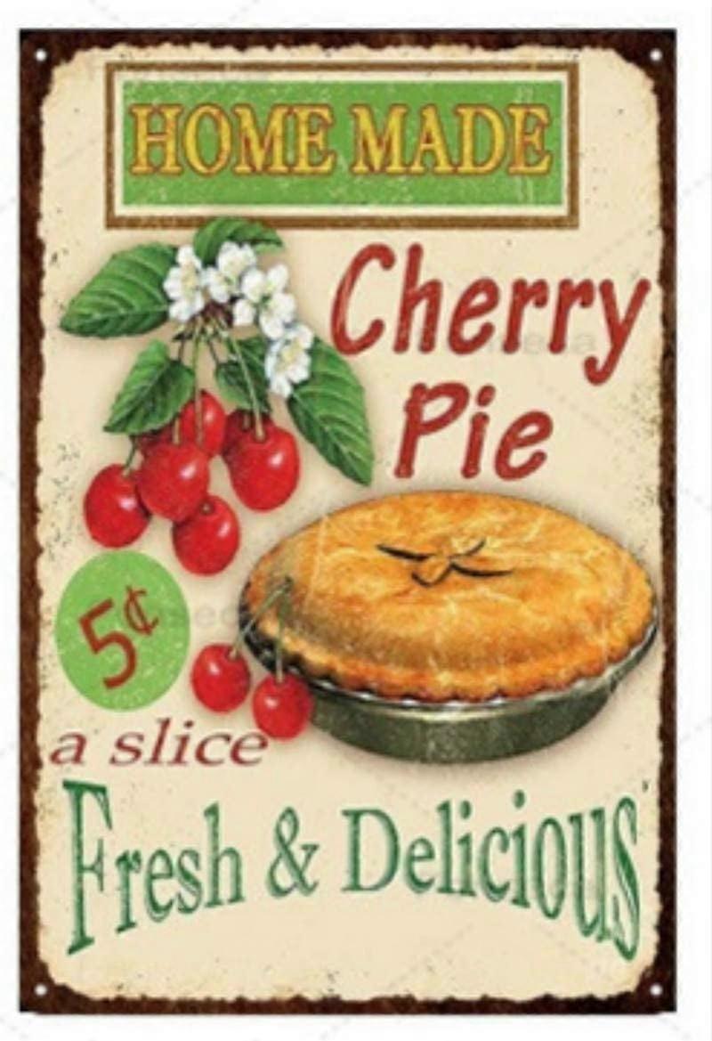 Tin Sign Home Made Cherry Pie Fresh & Delicious Vintage Chic Art Wall Decoration for Store Bar Home Cafe Farm Garage Cabin or Club 12" X 8"