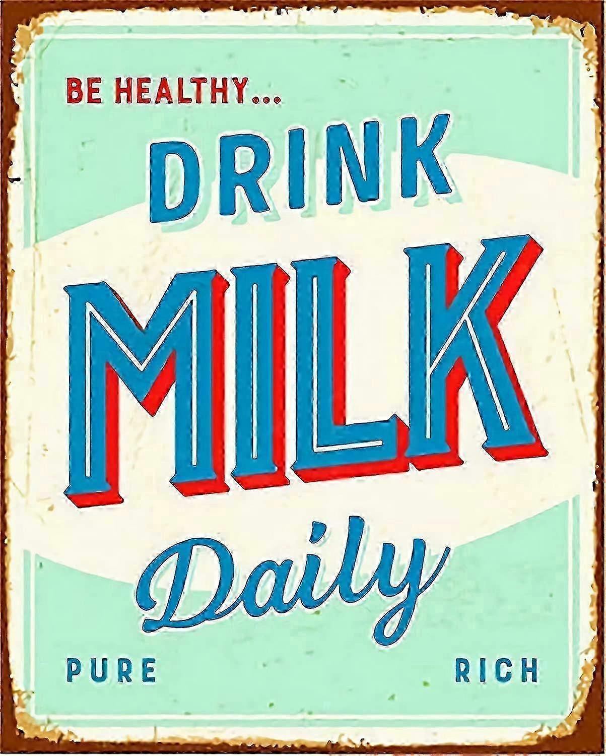Tin Sign Drink Milk Daily Vintage Metal Poster Art Decoration for Home Club Garage Store Bar Cafe Farm 12" X 8"