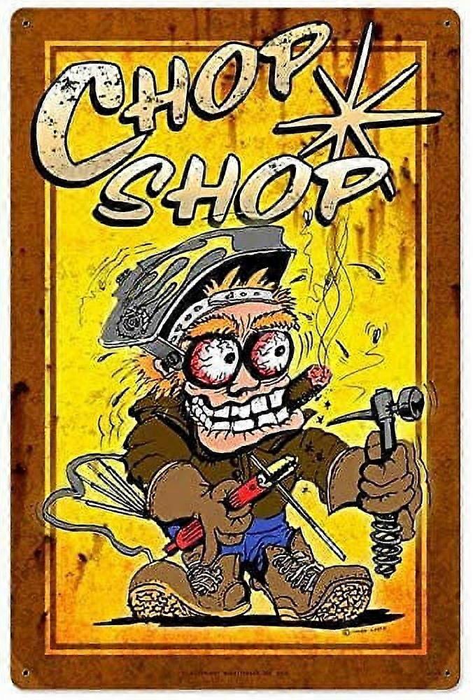 Tin Sign Vintage Chic Art Decoration Poster Hot Rod Auto Body Chop Shop for Store Bar Home Cafe Farm Garage or Club 12" X 8"