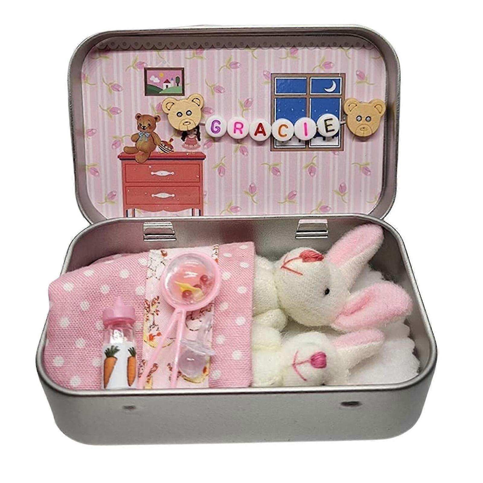 Pocket Tiny Rabbit In A Tin Box Stuffed Doll Plush Toy Easter Bunny Kids Gift SXQ