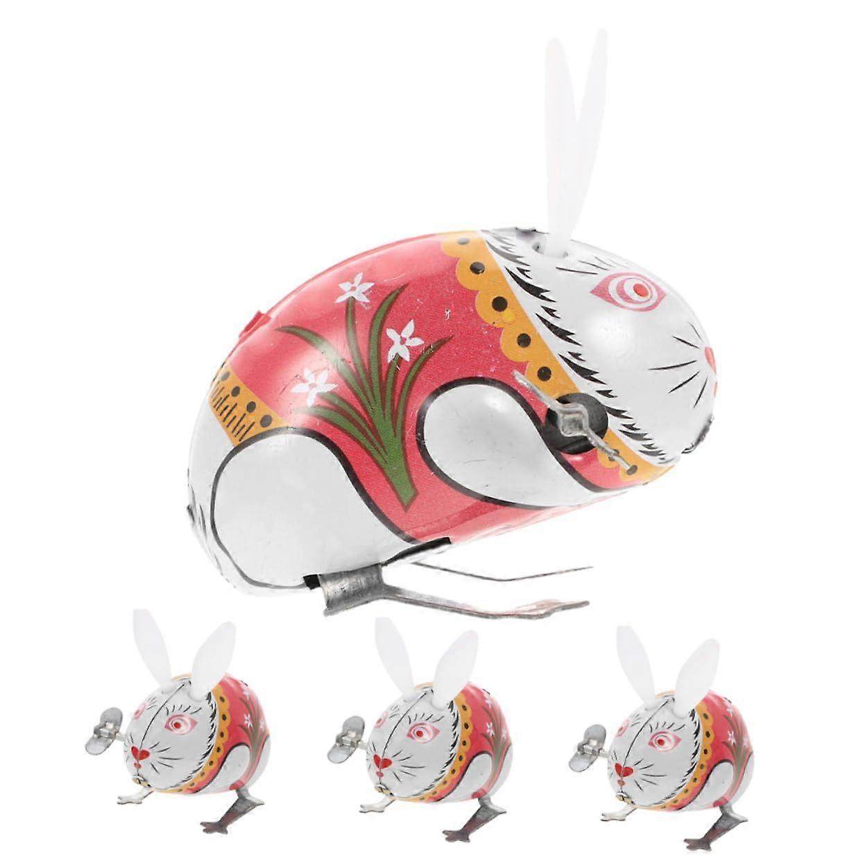 Pack of 4 Wind Up Rabbit Made of Tin Funny Wind Up Rabbit Cute Animal Wind Up Toy Feather Wind Up Animals Rabbit Running Toy Novelty Winding Bunny for