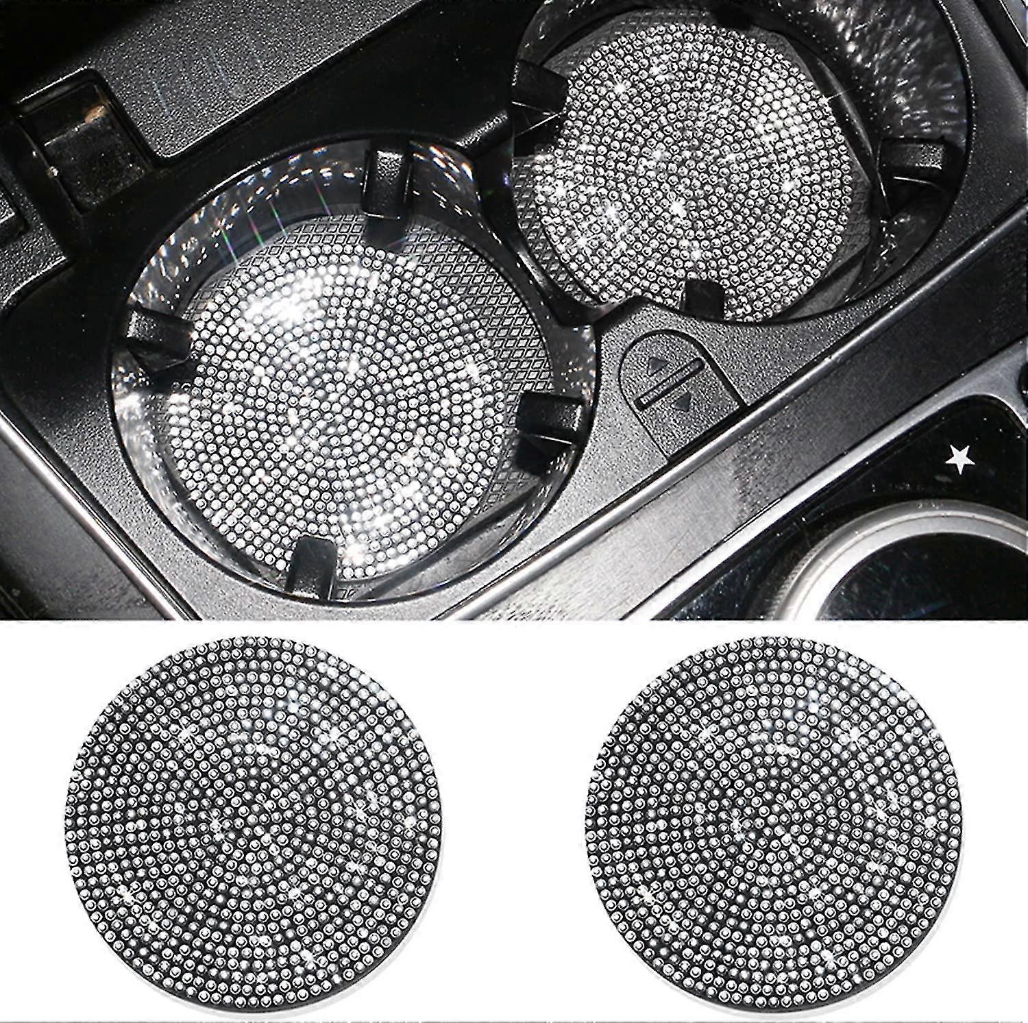 Bling Car Coasters, Pvc Travel Auto Cup Holder Insert Coaster, Anti Slip Crystal Vehicle Interior Accessories Cup Mats For Women And Girl. (white)2pcs