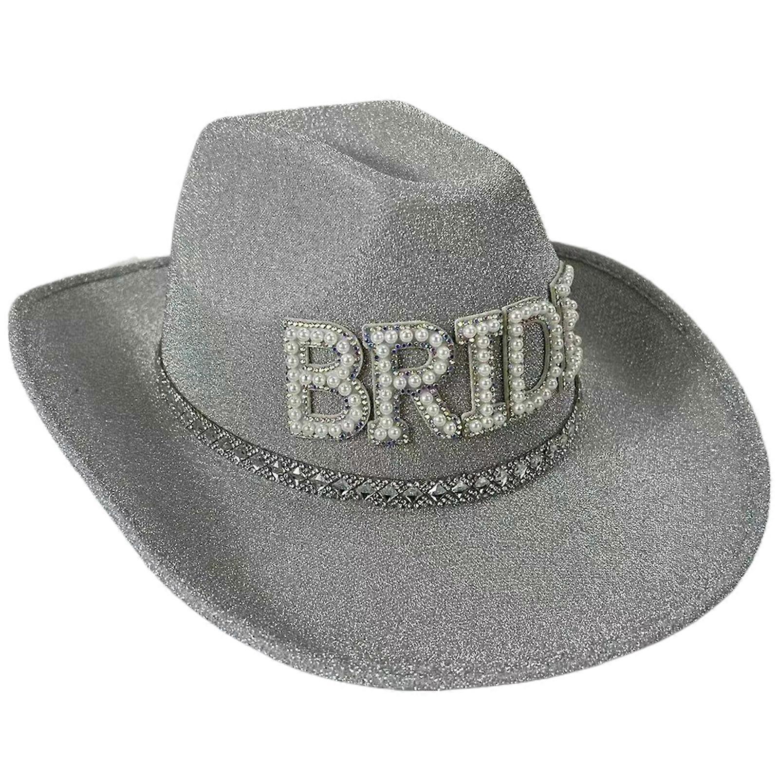 Blingbling Diamond Bride Hat GROOM Cowgirl Hat Wedding Encrusted for Wedding Engagement Bachelorette Party Silver