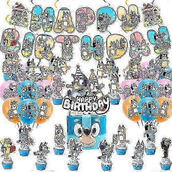 Bluey birthday party flag banners, cake decorations, balloons, birthday decorations