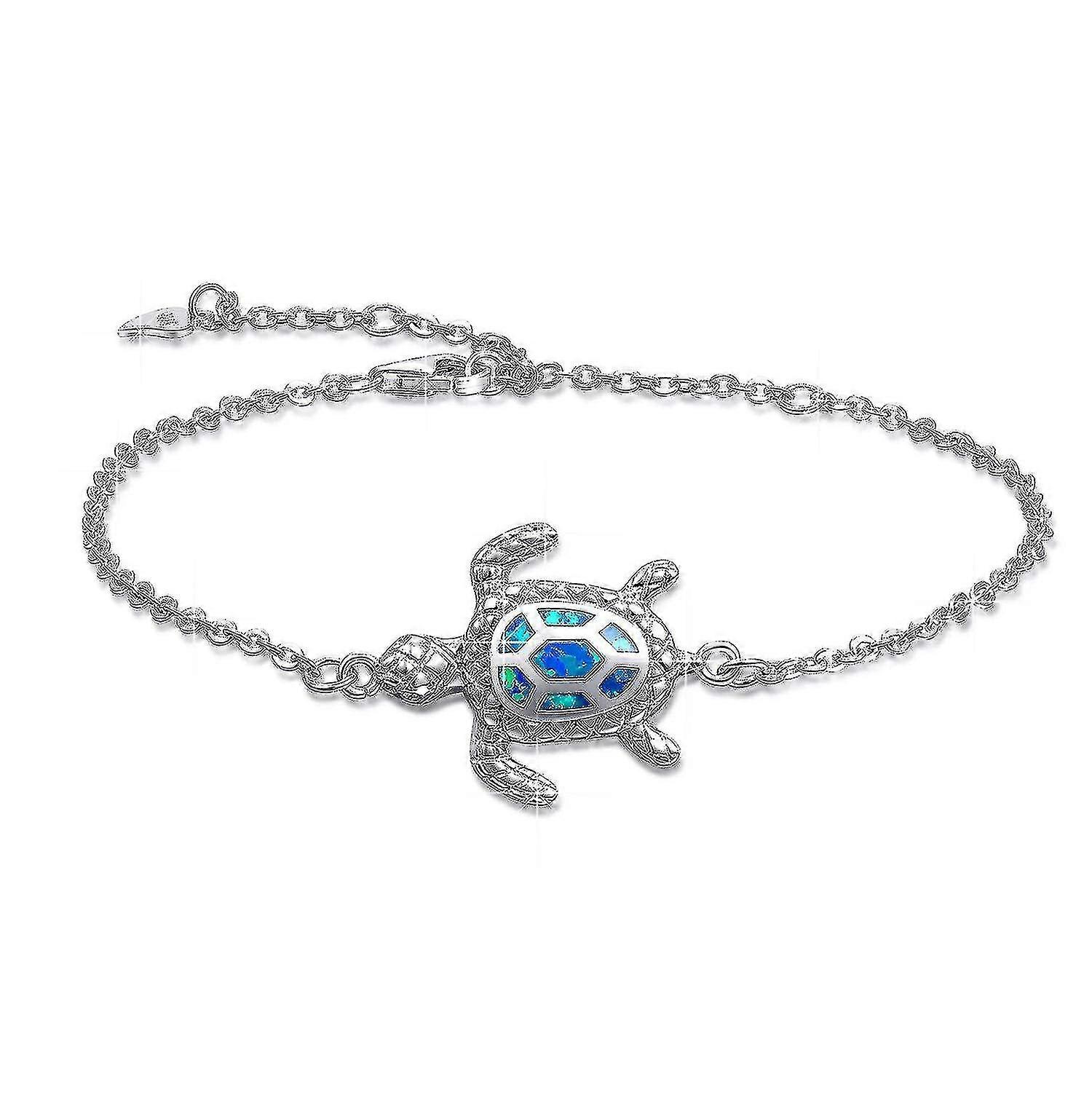 Blue Opal Sea Turtle Ankle Bracelet Sterling Silver Anklet Jewelry For Women Gifts New Version (large Bracelet)