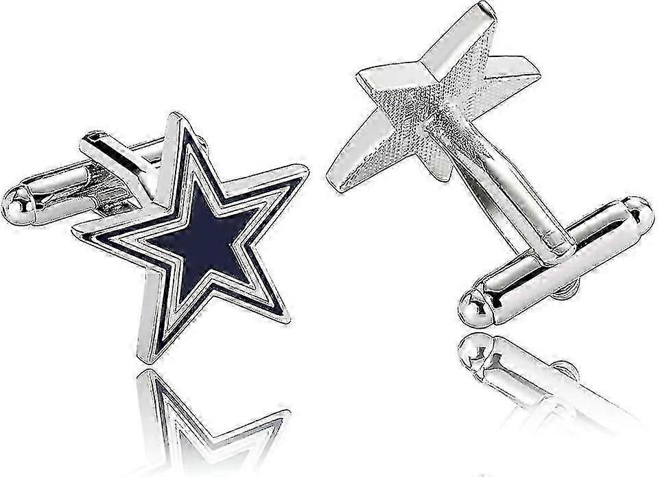 Blue Star Engraved Stainless Steel Cufflink Set for Men - Wedding Cufflinks With White Blue Color