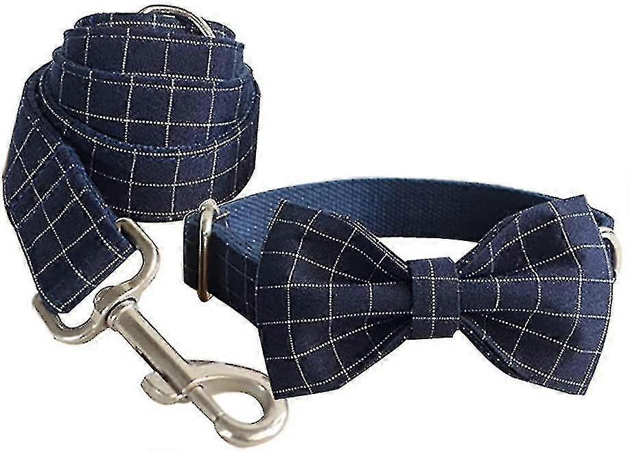 Blue Plaid Cat Dog Bow Tie Collar - Pet Bow Tie Collar Dog Ties Neckties Adjustable For Party Wedding Xl