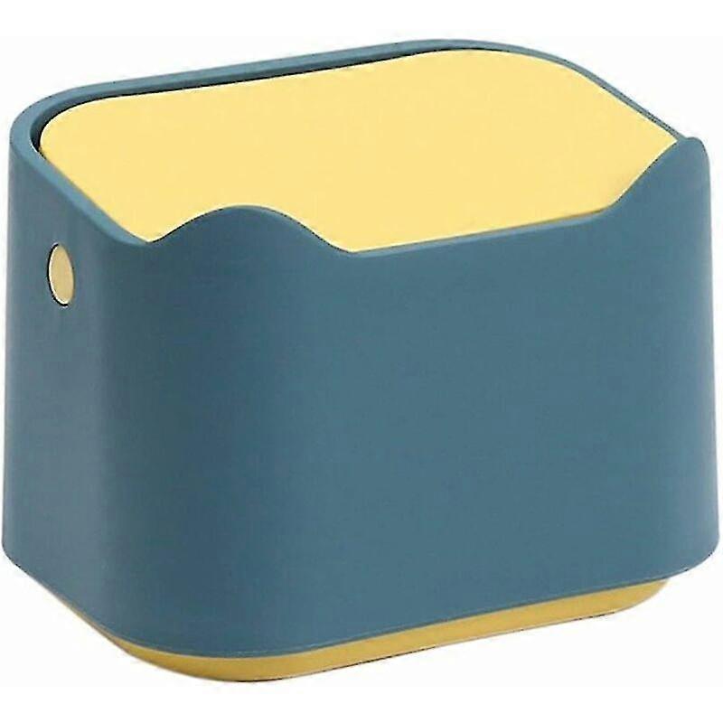 Blue Dream Small Table Trash Can, Portable Mini Tabletop Trash Can, Press Type Lid, Desktop Tissue Box Holder For Home Office Kitchen Bedroom Bathroom