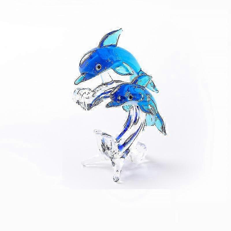 Blue Dolphin Glass Figurine - Collectible Sea Animal Home Ornament