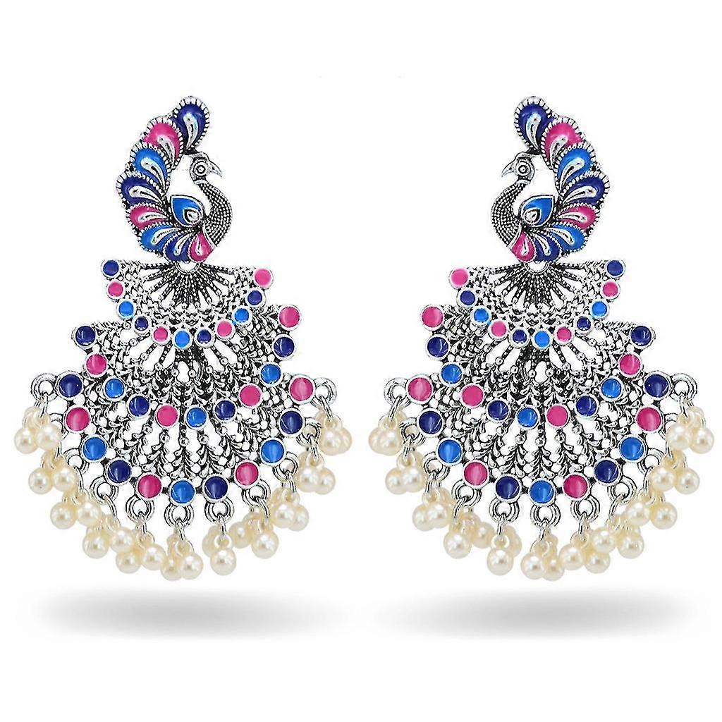 Features:brand new and high qualityAntique design peacock inspired dangling style big earrings set for women, girls and ladies.Handmade finish, high quality alloy, long lasting, Skin Friendly, hypoallergenic, durablility with the look of fine grand royal premium quality jewellery.Eye catching unique exotic jewelry, for ideal for any ethnic outfit like saree, bridal wear wedding or on party, festival or any special occasion or as fashion costume accessories.Great gift for any occasion for yourself or your loved ones giftIf you have any questions, please feel free to contact us. Package Includes:1 Pairx Peacock Earrings Specifications:Color: ColorMaterial: AlloySize: 5.3x5.7cm/2.08x2.24inQuantity: 1 Pair note:Please allow a little error on the size due to manual measurement. The color might exist slightly difference due to different displays.