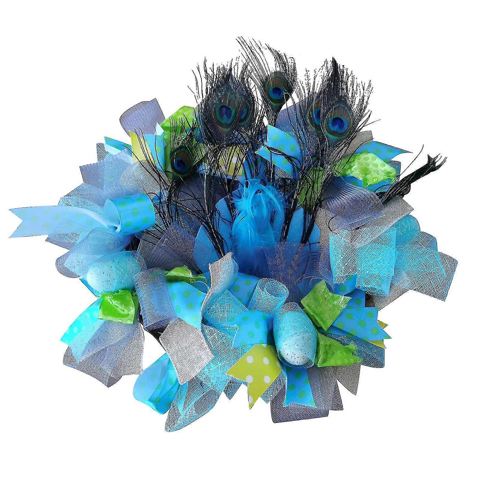 1. Crafted from quality materials, this peacock feather wreath is built to last and withstand outdoor elements. The feathers are securely attached to a sturdy wire frame, ensuring the wreath maintains its shape and remains in place in windy conditions.