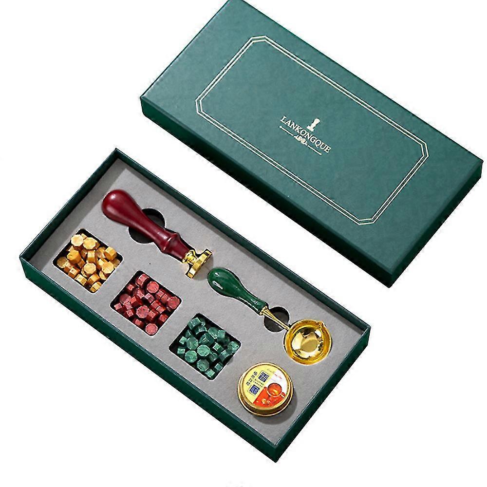 Product material: metal Size: 10*2.5cm Color: yellow, red and green; blue, silver and yellow Quantity: 1 set Package content: 1*Seal set 1.DIY Wax Sealscontains wax beads of various colors, melts evenly and easy to mix colors. You can choose to use a single color to melt, you can mix different colors with your own creativity DIY to get unique interesting wax seals. 2.Unique Design The seal is made of zinc alloy handle and brass head, which is convenient to use. The wax envelope cover includes everything you need for a wax seal, which can quickly and even help you make a perfect wax seal. 3.ApplicationIdeal for the production of invitations, letters, thank you card, map, manuscript, envelope, greeting card, crafts, gift seals, wine seals and other process projects. 4.Decent giftsBeautiful retro design can always get more peoples love and easy to operate. Compensation with a beautiful box, this wax seal set is given to the friend or family perfect gift. Applicable gift-giving relationships: juniors, colleagues, friends, elders.Applicable festivals: Spring Festival, Mothers Day, Teachers Day, they will like it 5.High quality material - The sealing stamp and melting spoon is made of high quality brass head with wooden handle. The sealing wax beads are made of high-quality wax, no smoke or smell when burning.
