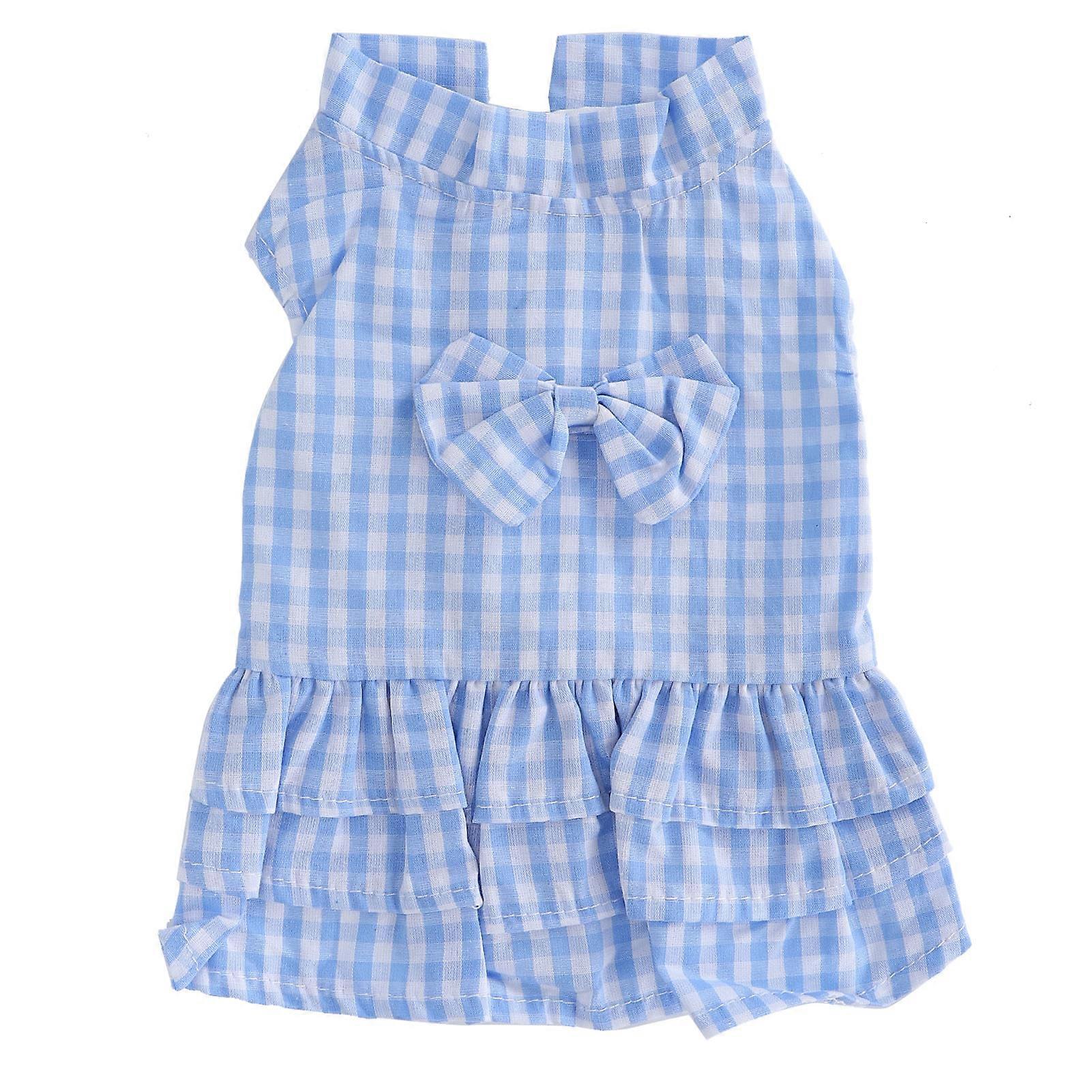 Blue Pet Summer Clothes Dog Polyester Sleeveless TShirt Skirt BowKnot Dress(XZD221 Bleu S)
