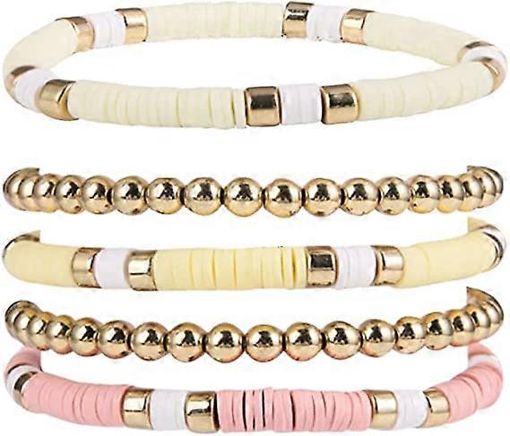 2 piece of Bracelets Set Colorful Preppy Smile Evil Eye Beaded Stretch Bracelets Clay Stackable Boho Disc Party Gifts Y2K Kidcore Aesthetic Summer Bea