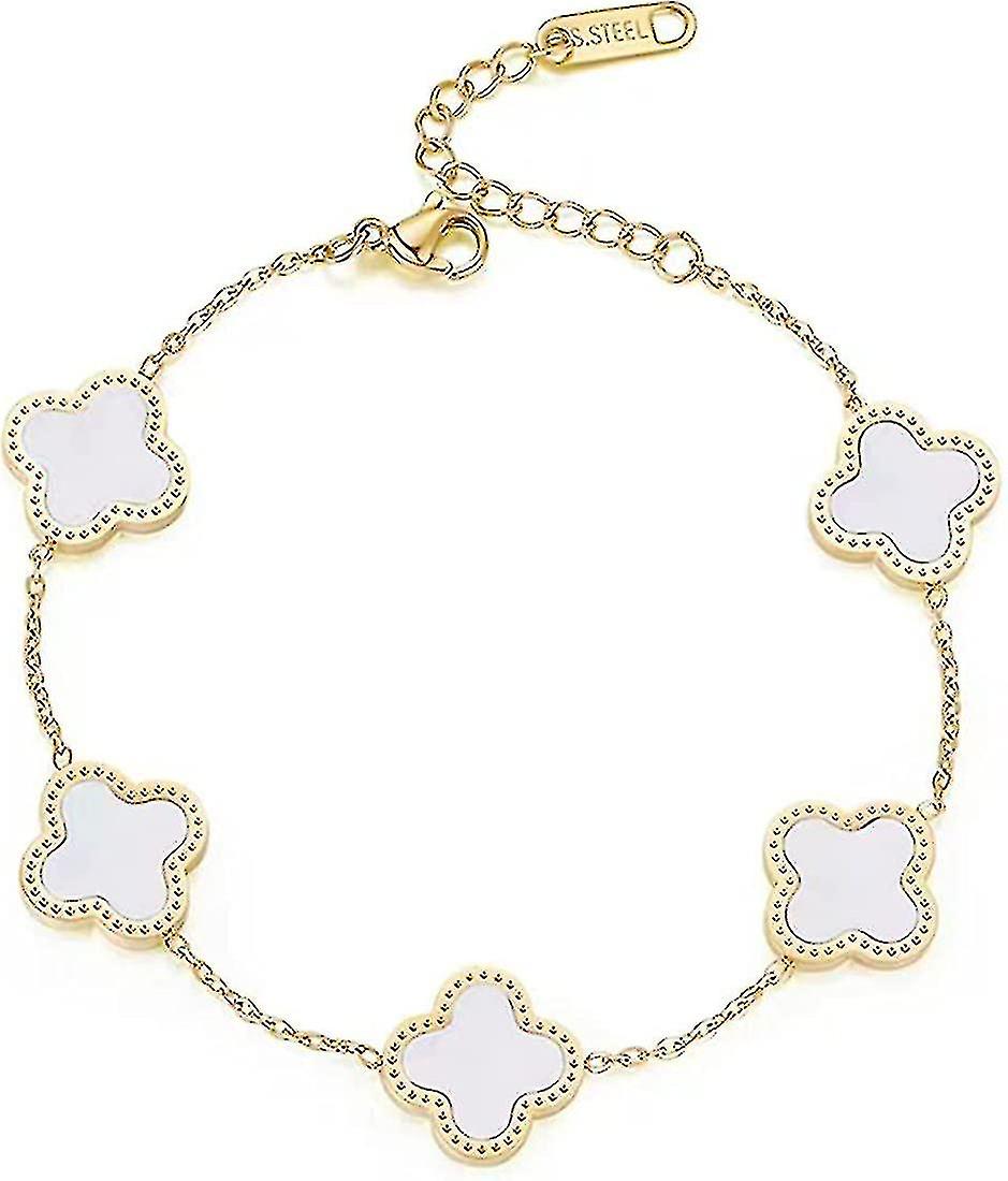 Bracelet Fashion Ladies Girls Adjustable Bracelet Cute 14k Gold Plated Lucky Clover Bracelet Ladies Girls Mother"s Day Gift Jewelry (white Leaf)