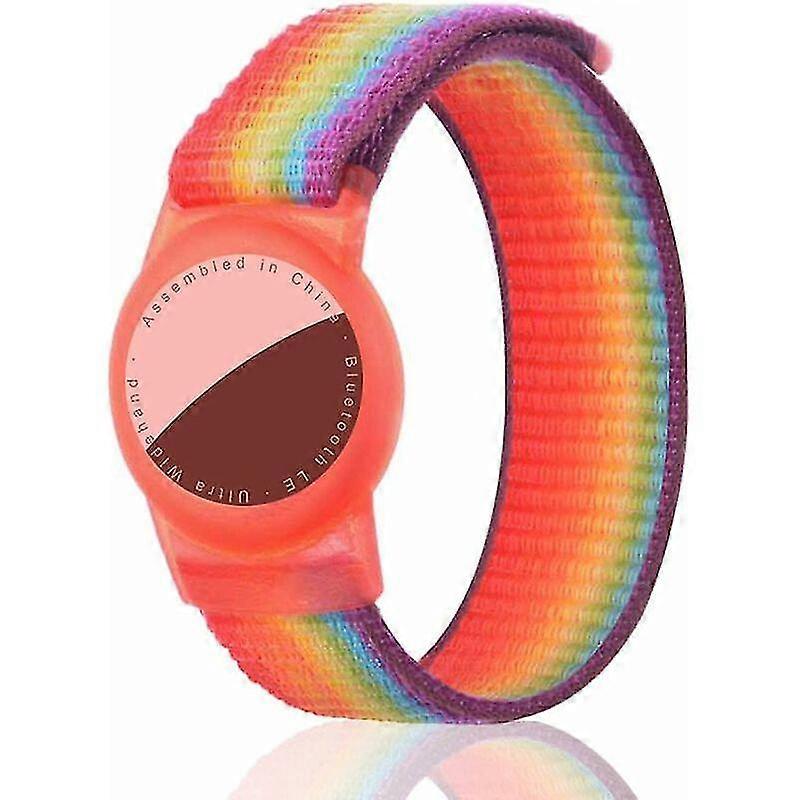 Bracelet Airtag en nylon pour enfants,22CM anti-perte, protection anti-rayures pour le positionnement du bracelet pour Apple AirTag tanche (arc-en