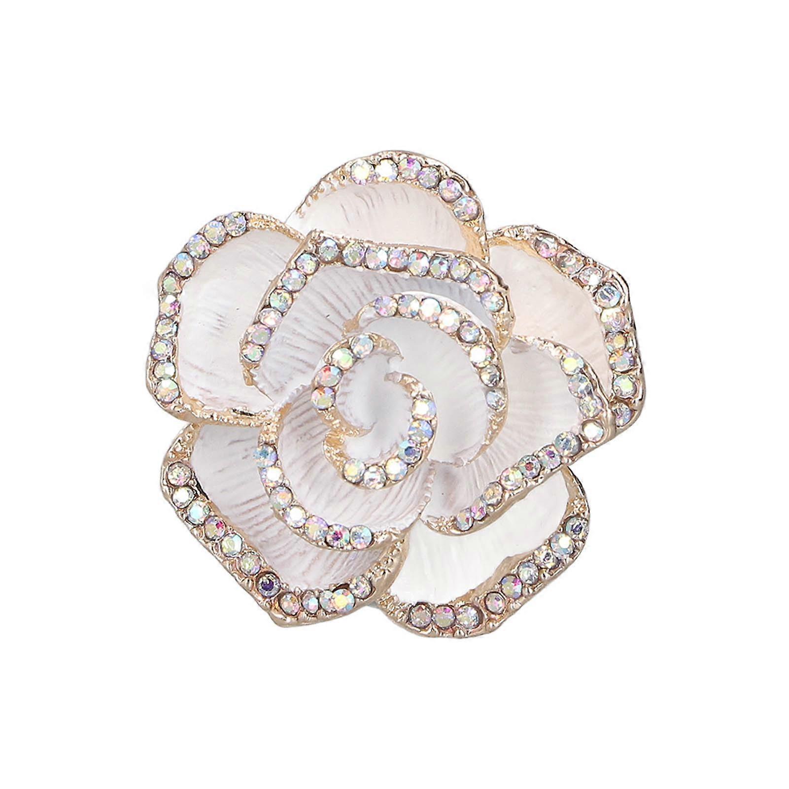 Brooch Pin Camellia Shape Elegant Exquisite Rhinestone Embellished Brooch for Women Clothes Silk Scarf Decoration GiftWhite