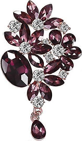 Brooches Pin Flower Leaf Bouquet Brooch Created Crystal Brooch-Purple