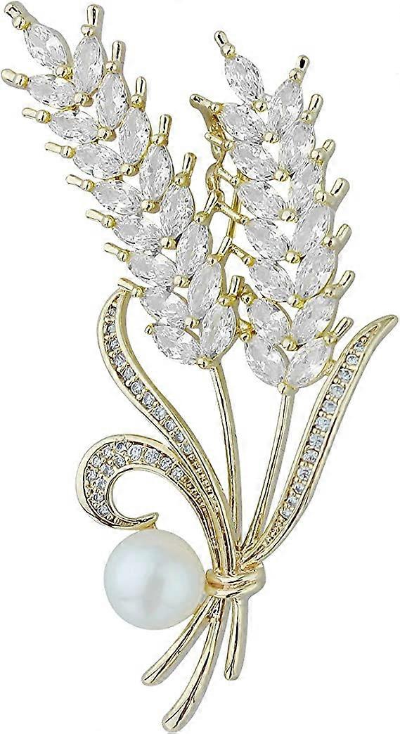 Brooches Pin for Women or Girls Double Paddy Wheat Brooches Created Crystal Shell Pearls Brooch Golden Color