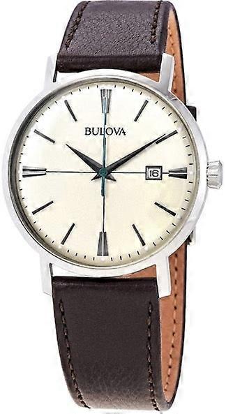 Bulova Aerojet 96b242 Men's Quartz Watch - 39mm Stainless Steel Case, Cream Dial, Brown Leather Strap