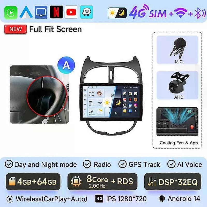Car Radio For Peugeot 206 206CC 206SW 2001 - 2008 wireless CarPlay Android 14 Auto car intelligent systems No 2 din 2din DVD
