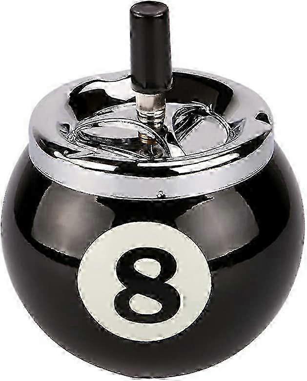 Billiards 8- Ball design, great for billiards fans and playersLarge capacity for storing more cigarette ash. Also a great desktop decor for home and office. Stylish and modern style allows it to be an exquisite and nice decoration. Suitable for family, house, bar, cafe, hotel, restaurant, party, buffet, etc. Windproof. Great to keep the table and carpet clean while smoking. A great gift for your friend and family. A nice gift for any smoker. Also suitable for home, bar, cafe, hotel, restaurant, party, buffet, etc. Made of material for lasting use. Simply press the grip and the tray will rotate automatically to scatter the ash to the bottom of the ashtray. Note: Due to the light and screen setting difference, the item's color may be slightly different from the pictures. Please allow slight dimension difference due to different manual measurement.