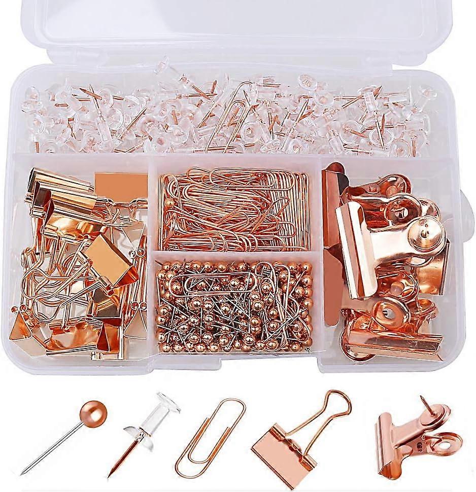 Push Pins Binder Clips Paper Clips Map Tacks Sets, 5 Styles 500 Pcs Paper Clips Binder Clips Push Pins Map Tacks Set, School and Home Supplies