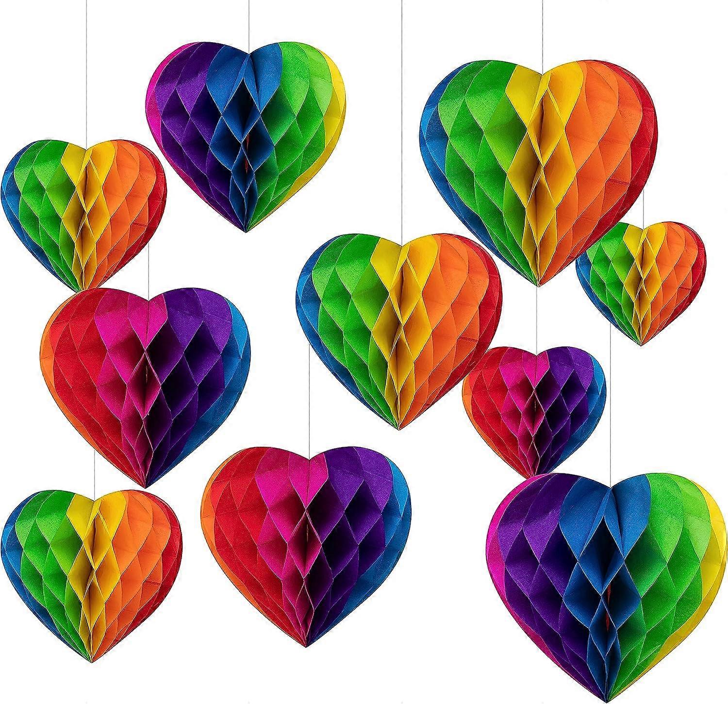 Pride Decorations,10Pcs Rainbow Paper Honeycomb Balls Hanging Pom,Party Decoration,Festival Accessories,for Birthday Gratuation Gay LGBT Party Celebra