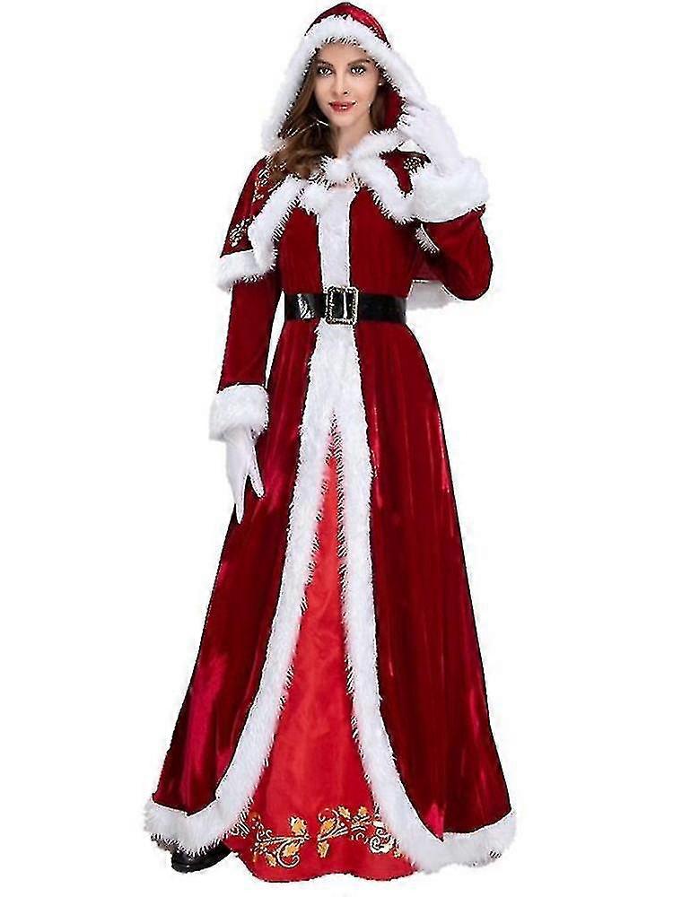 Plus Size Deluxe Velvet Adults Christmas Costume Cosplay Couple Santa Claus Clothes Fancy Dress Xmas Uniform Suit For Men Women