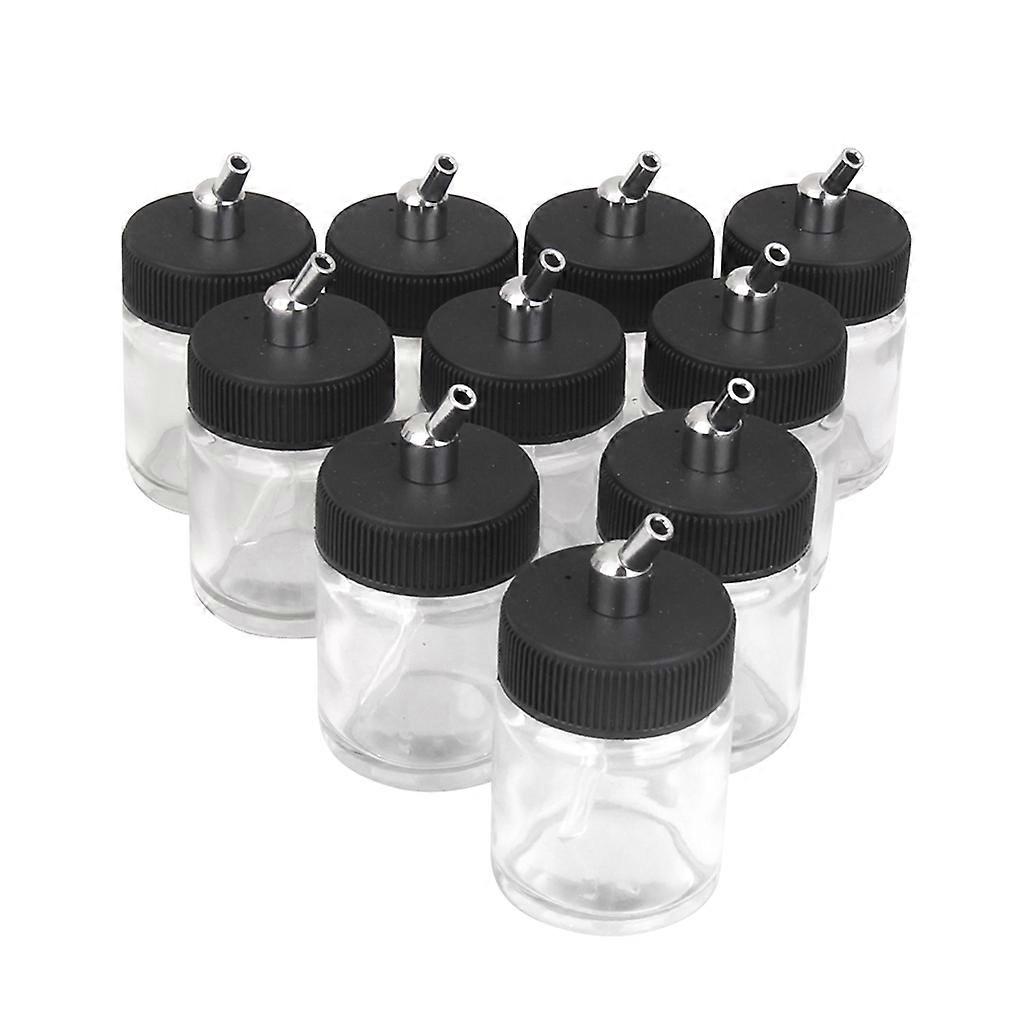 Description: Each bottle bottom diameter: Approx. 3.5cm / 1.4 inch Height: Approx. 5cm / 2 inch (not included the mouth height) Mouth height: Approx. 1.2cm / 0.5 inch Mouth external diameter: Approx. 4.5mm / 0.17 inch Mouth internal diameter: Approx. 2.5mm / 0.1 inch Material: Stainless steel, glass, plastics Color: Transparent Capacity: 22cc Package Includes: 10 x Airbrush bottle