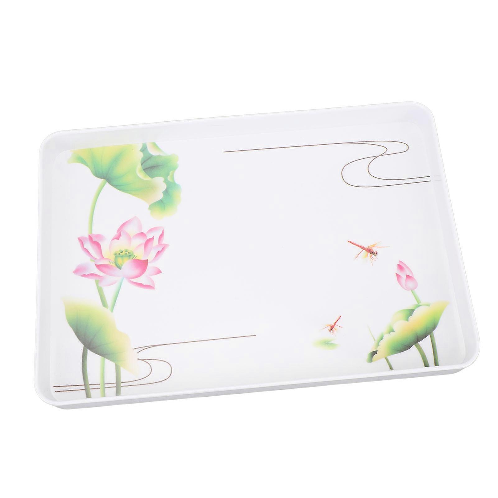 Plastic Serving Tray Rectangular 15.4x10.6in Reusable Thick Food Platter for Snack Fruit Cookies Desserts Kitchen Party Camping Use Water Lily
