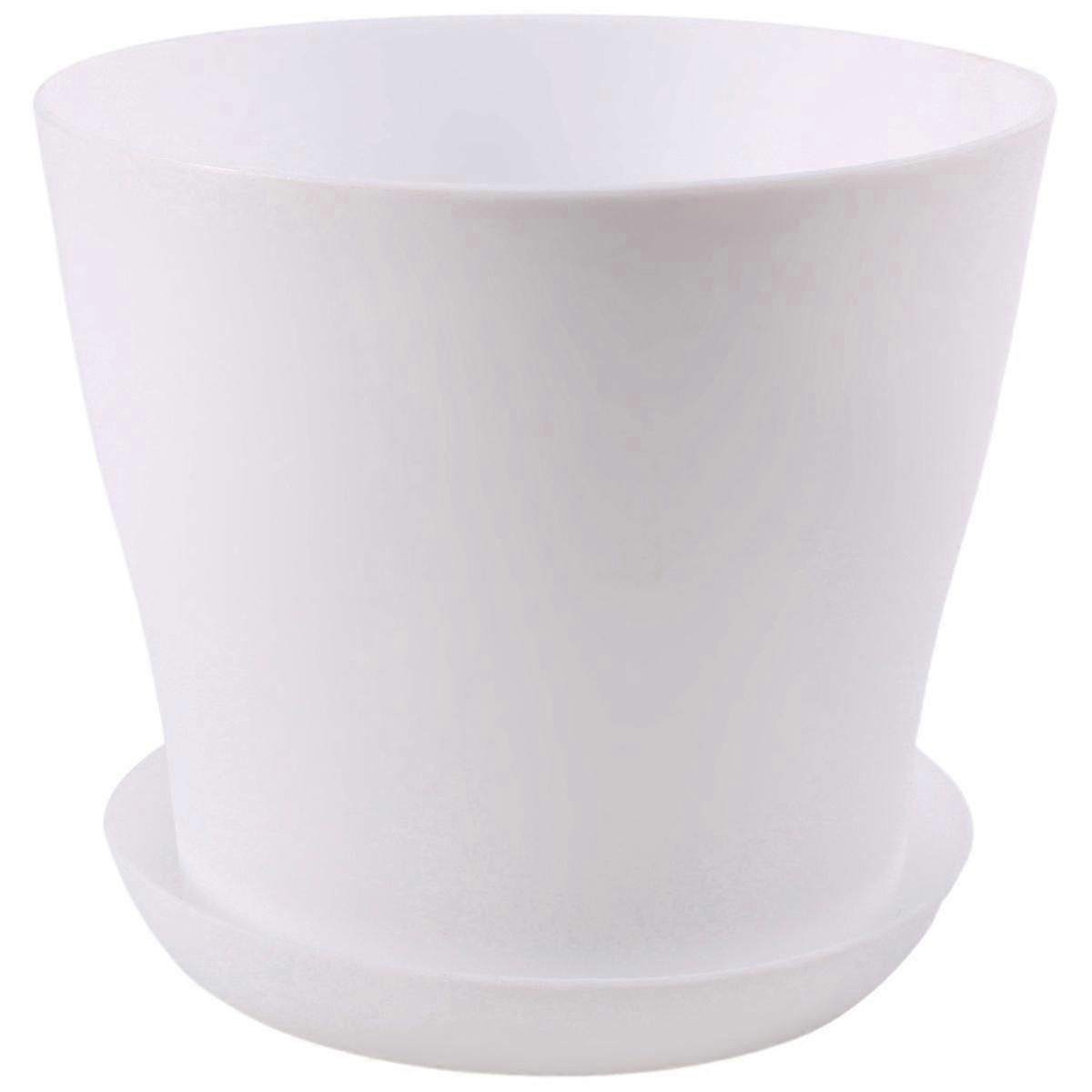 Plastic Round Gloss Flower Pot Planter with Saucer Tray, Home Garden Decor, 17cm Upper White Version