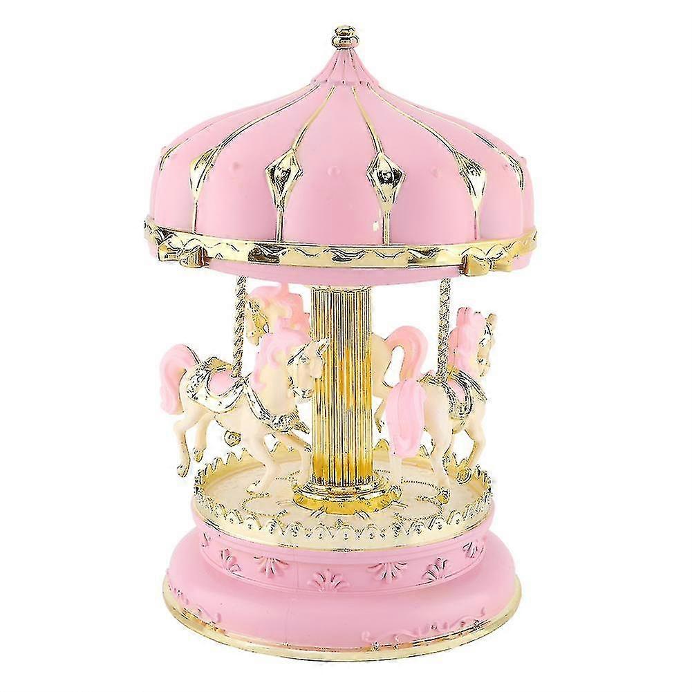 Plastic Romantic Three Horses Carousel Music Box Birthday Kids Anniversary Gift (pink)