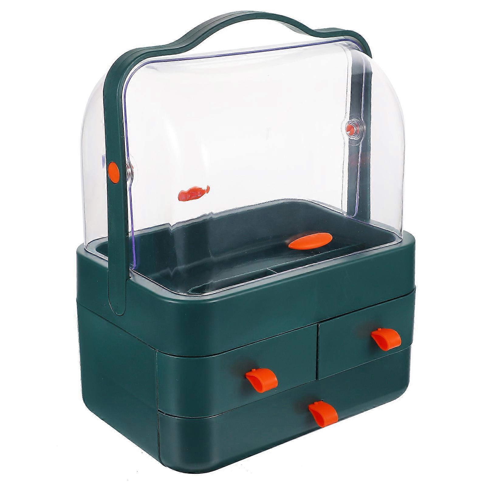 Plastic Cosmetics Storage Organizer Dust-Proof Makeup Container Box Green 1Set For Jewelry And Cosmetics