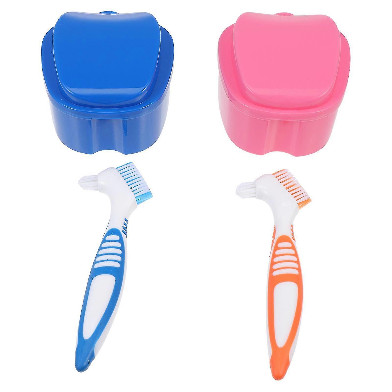 1 Set Of Plastic Denture Storage Box Portable False Tooth Box Brush Kit