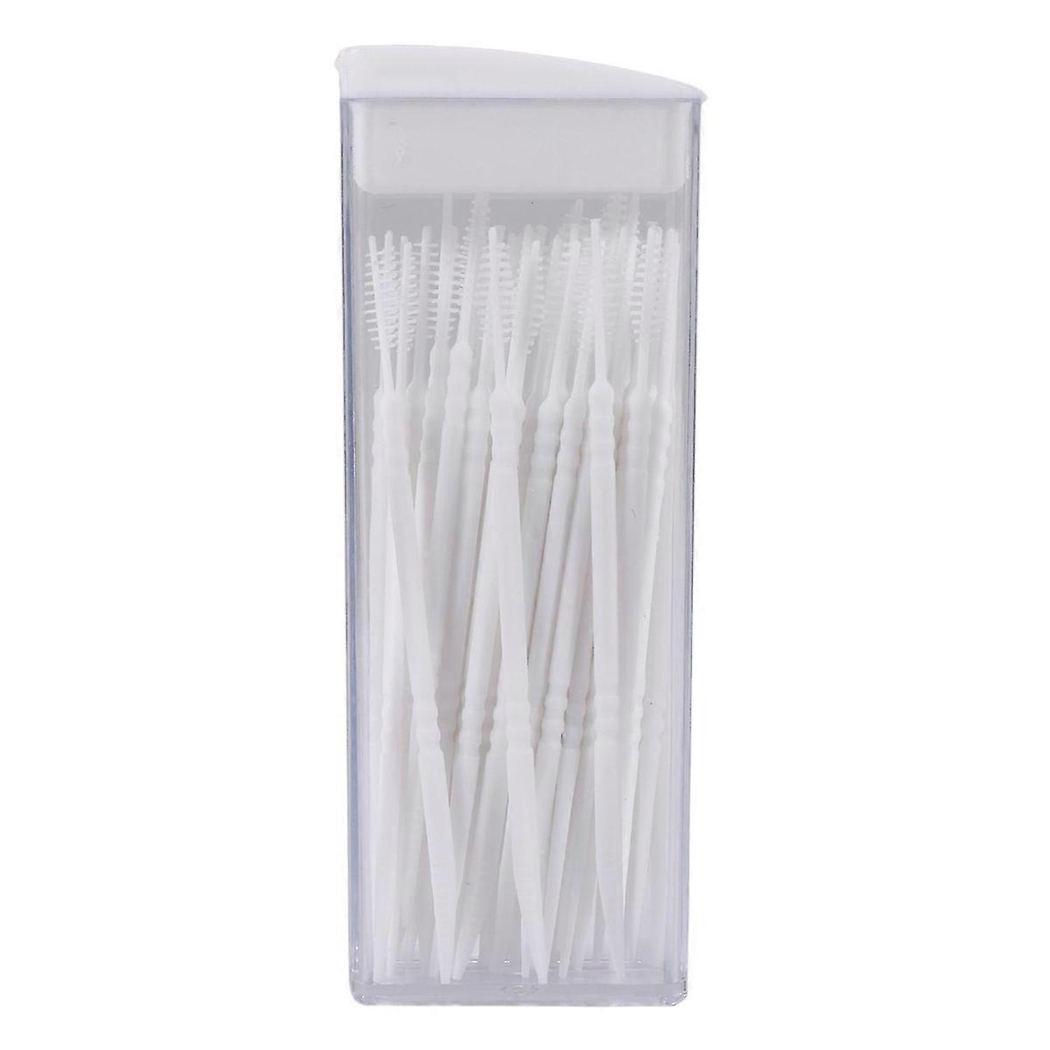 50 Pcs Plastic Toothpicks 2 Way Tooth Picks Interdental Brush Cleaners Portable Box Random Color