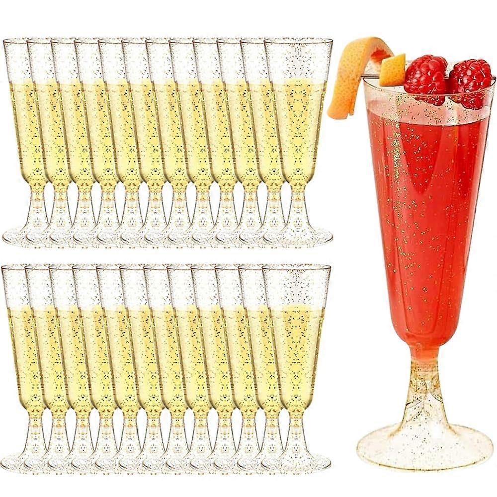 Plastic Champagne Glasses, Pack of 25 Gold Glitter Flutes for Parties