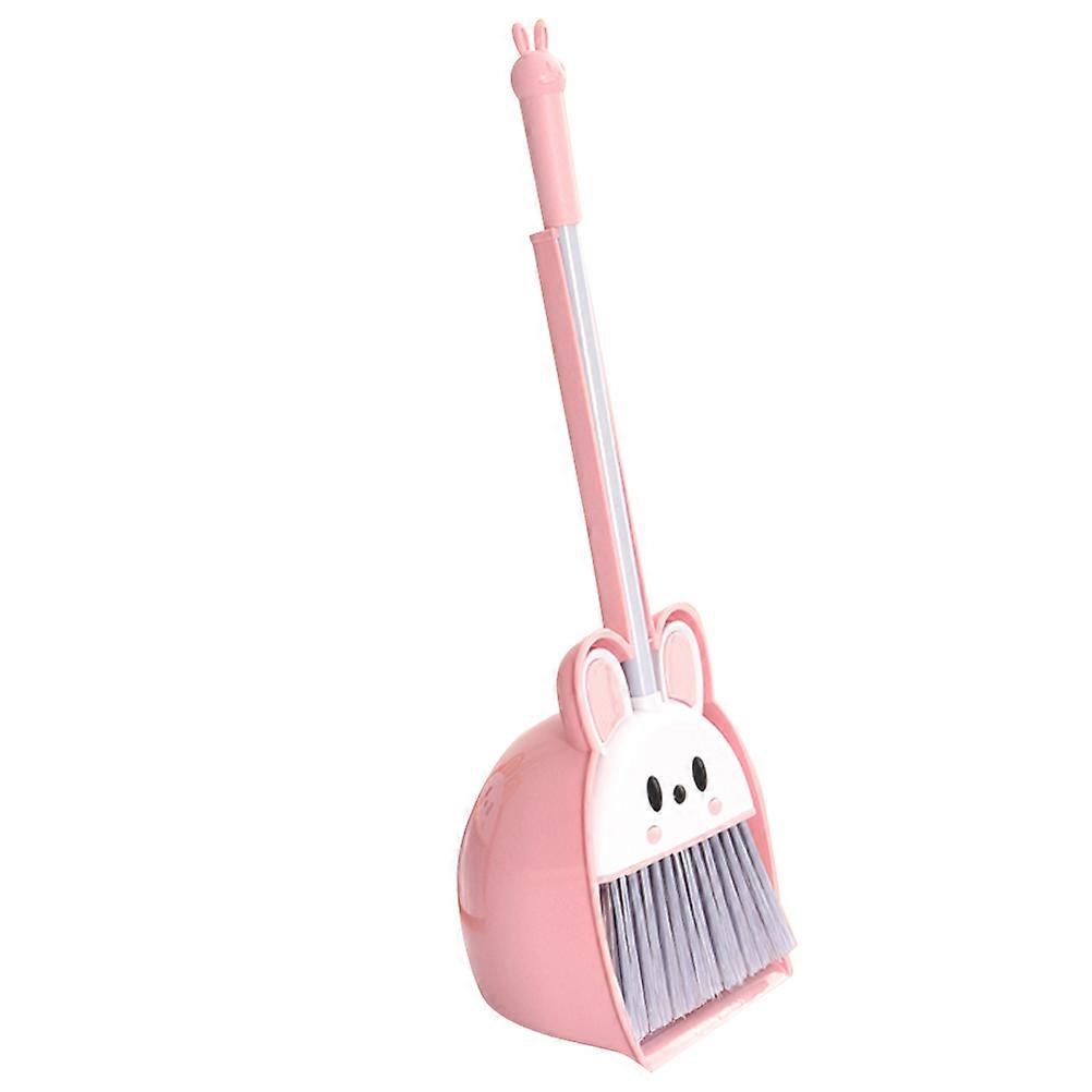 Pink Mini Broom and Dustpan Set for Kids Cleaning Activities Made of Plastic Adorable Rabbit Theme