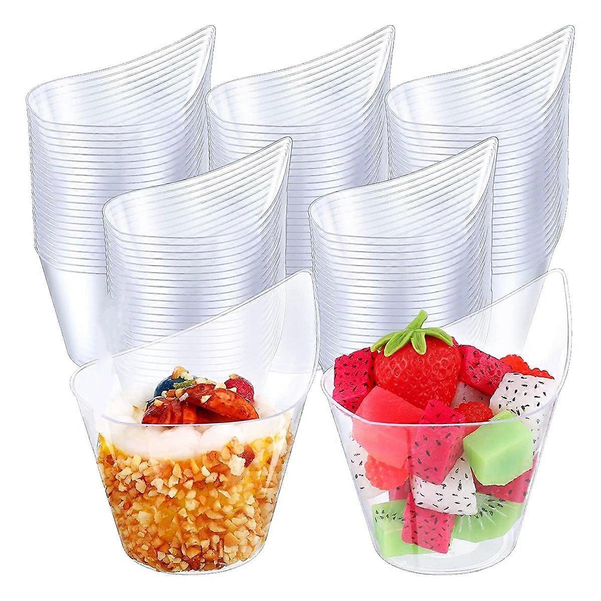 50 Plastic Dessert Cups, 200ml Curved Round Dessert Cups, Clear Parfait Appetizer Cups, Reusable Serving Bowl for Pudding Mousse Party