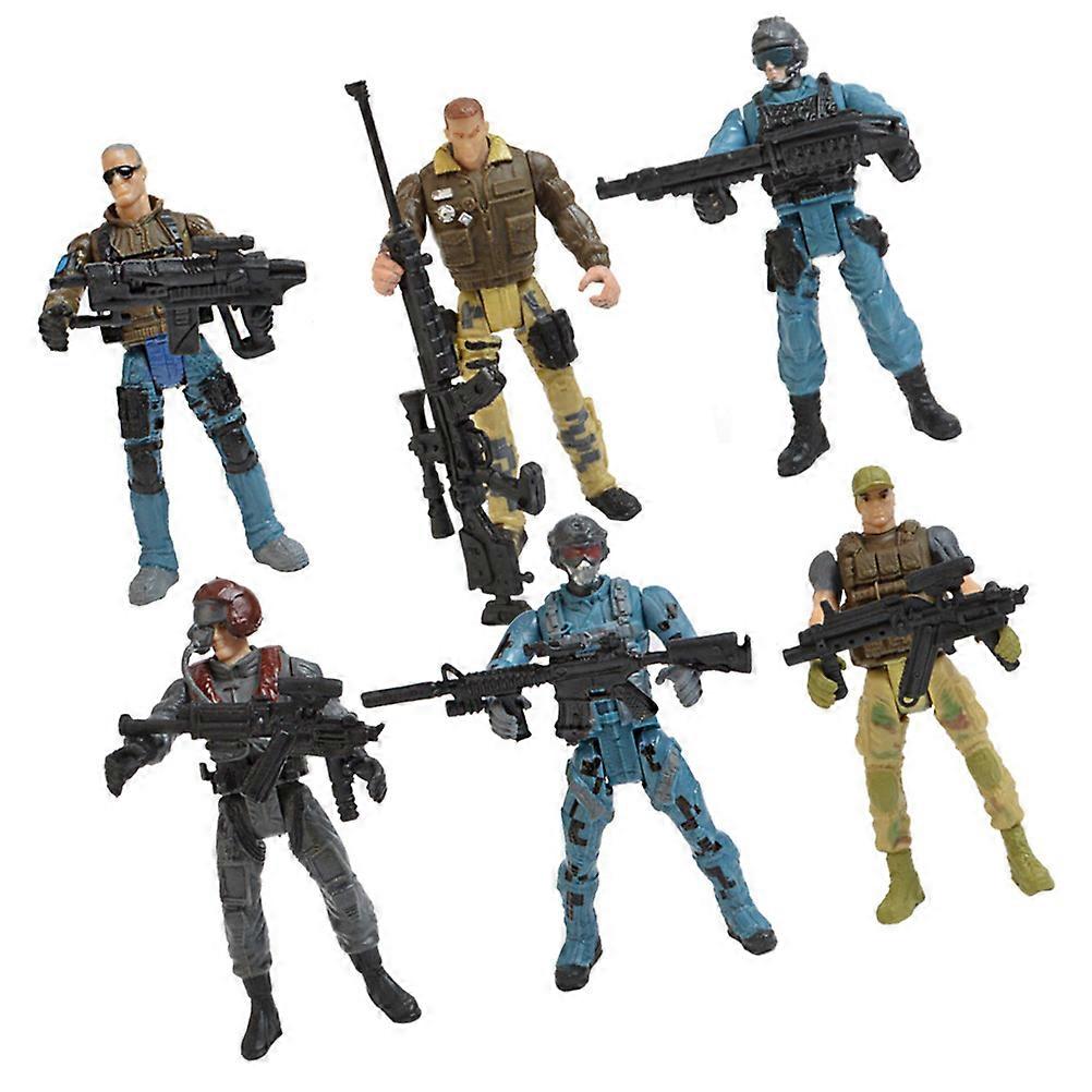 Plastic Soldier Models Toys with Moveable Arms and Legs for Kids Playing Assorted Color 6pcs