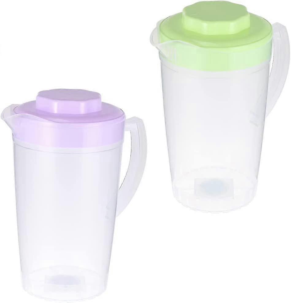 Plastic Refrigerator Jug: 2 Litre Carafe 2 Pieces Purple Green Lid For Juice Water Drinks