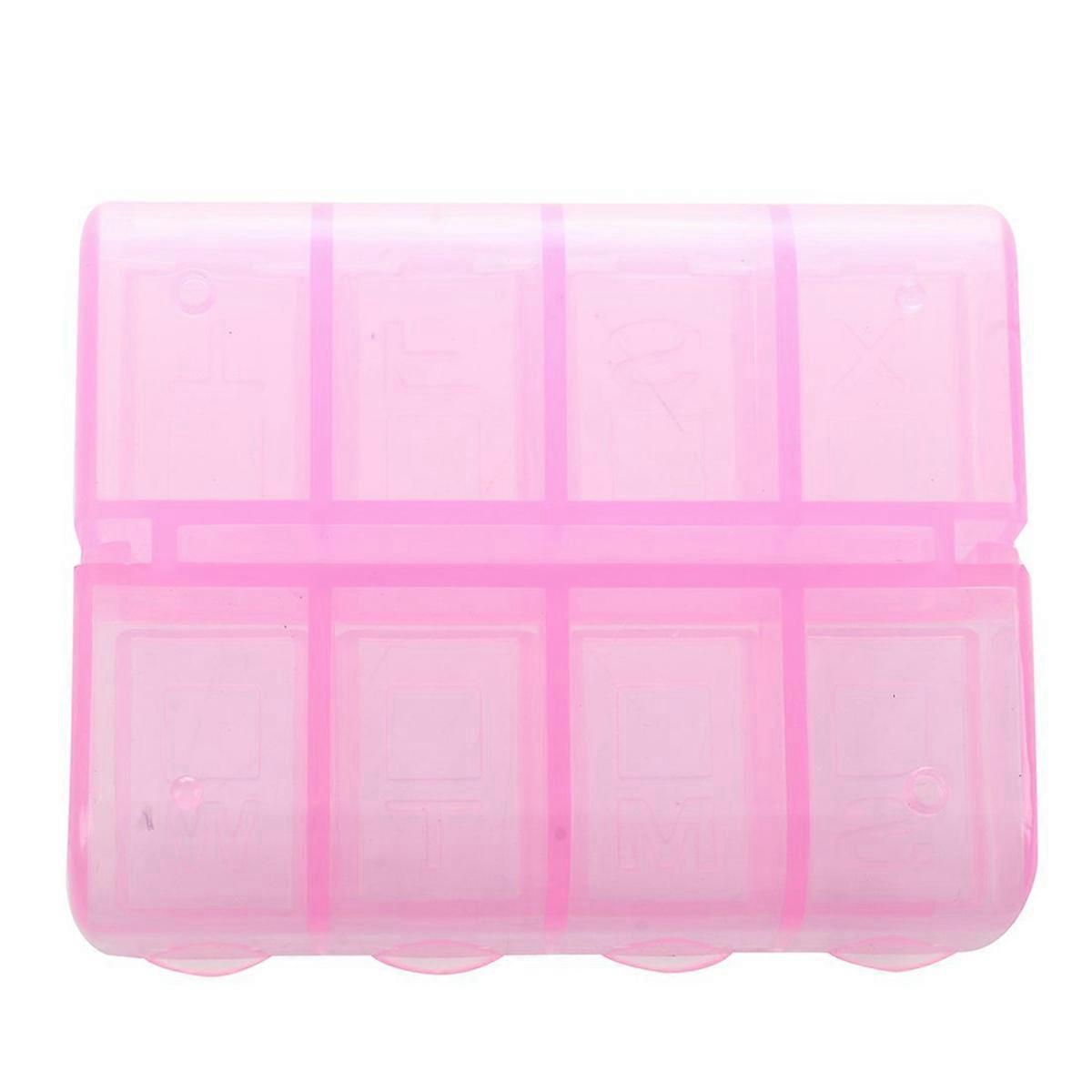 Plastic Rectangle 8 Compartments Medicine Pill Box Pink