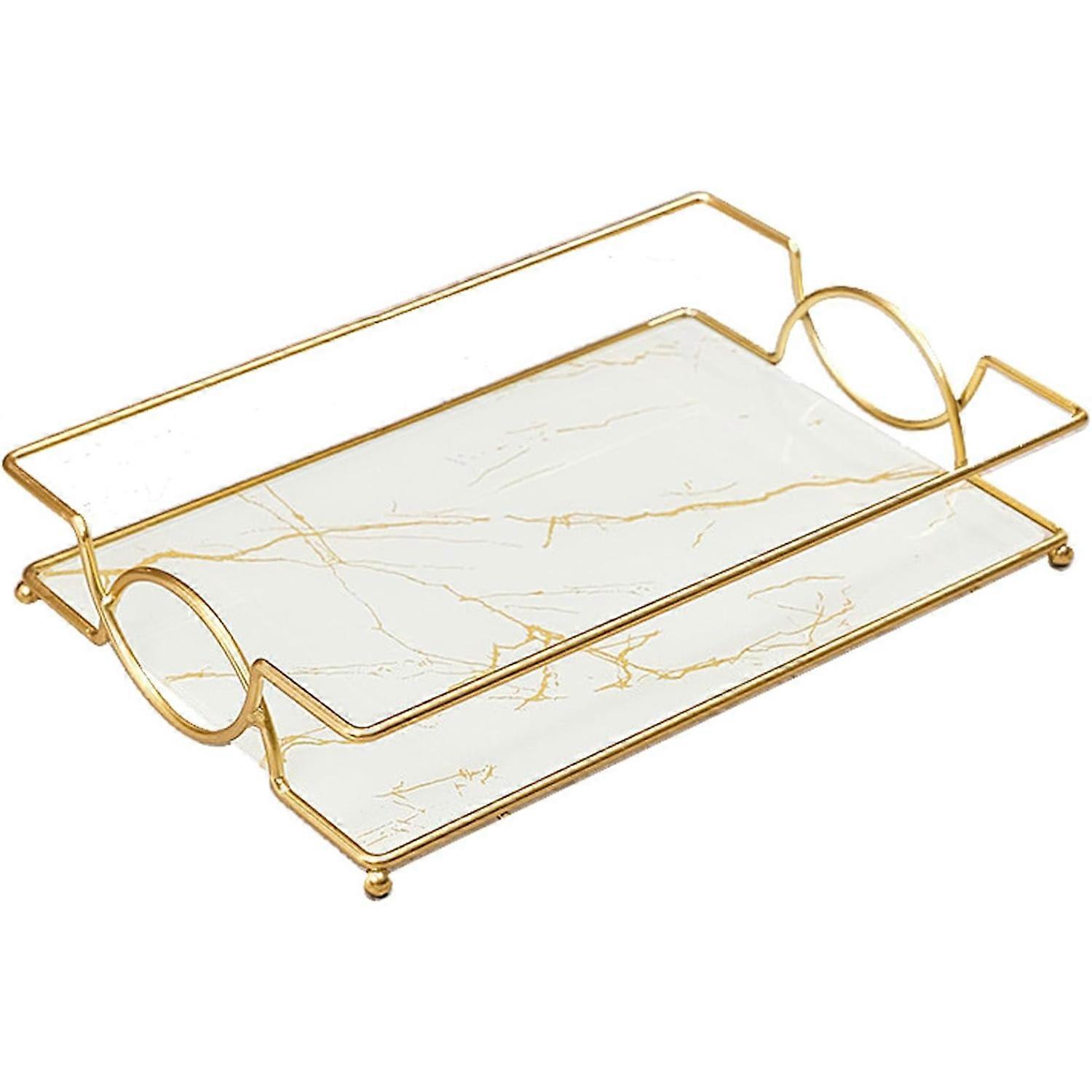 Luxury and CreativeThe bathroom counter tray is made of high-quality iron and glass material, coating with baking varnish technology, which is luxurious, stylish and creative, serving as a storage tray for bathroom and vanity counter, as well as a elegant and creative decoration Premium & WaterproofBenefit from high-quality material and excellent manufacturing techniques, this tray for bathroom counter is sturdy, wear-resistant, rust proof. The waterproof design makes this bathroom trays for counter set easy to clean, making it more longer lasting to use Multipurpose Bathroom TrayThis vanity tray is an excellent storage tray for displaying perfume, cosmetics, skincare, cosmetics, lipsticks, foundations, eye shadows, watch, keys, etc. It is an ideal bathroom counter tray for home, office, bars, cafe, hotel, etc Versatile Style and Easy to InstallOur perfume organizer comes with imitation marble glass partitions with beautiful textures and versatile styles, which is suitable for decorating room of different styles. The drill complimentary design of the perfume tray is easy to assemble, just place it on the countertop for organizing Good Present & No Worry for ShoppingThis exquisite vanity tray for bedroom dresser is the great Christmas, birthday and mothers day present for your wife, girlfriend, daughter and mother. If you have any dissatisfaction with our bathroom trays for counter, please do not hesitate to contact us for replacement or refund
