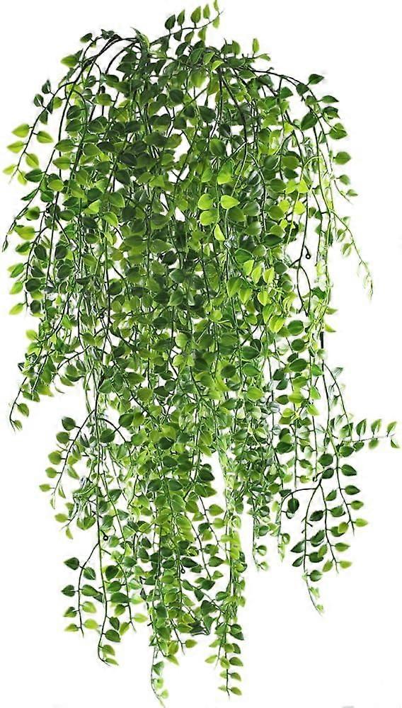 With lush green colours and generous leaves, these ivy artificial ivy are beautiful draping plants for gazebo, green plants wedding centrepieces. Unlike fresh plants, artificial hanging vine maintenance-free and durable, never wither and fall, lively realistic furnishings for your Artificial ivy are made of high quality plastic material, UV resistant and waterproof for outdoor use, perfect furnishing for the garden. Detailed with lifelike leaves, your balcony will be cosy, hang vine artificial it on kitchen cabinets, walls, mirrors, fences, cupboards and anywhere you want a touch of naturalness. Dimensions: total length: 90 cm / 35.43 inches. It is a vine of three stems and a few small branches with lots of green eucalyptus leaves, which is made of plastic.