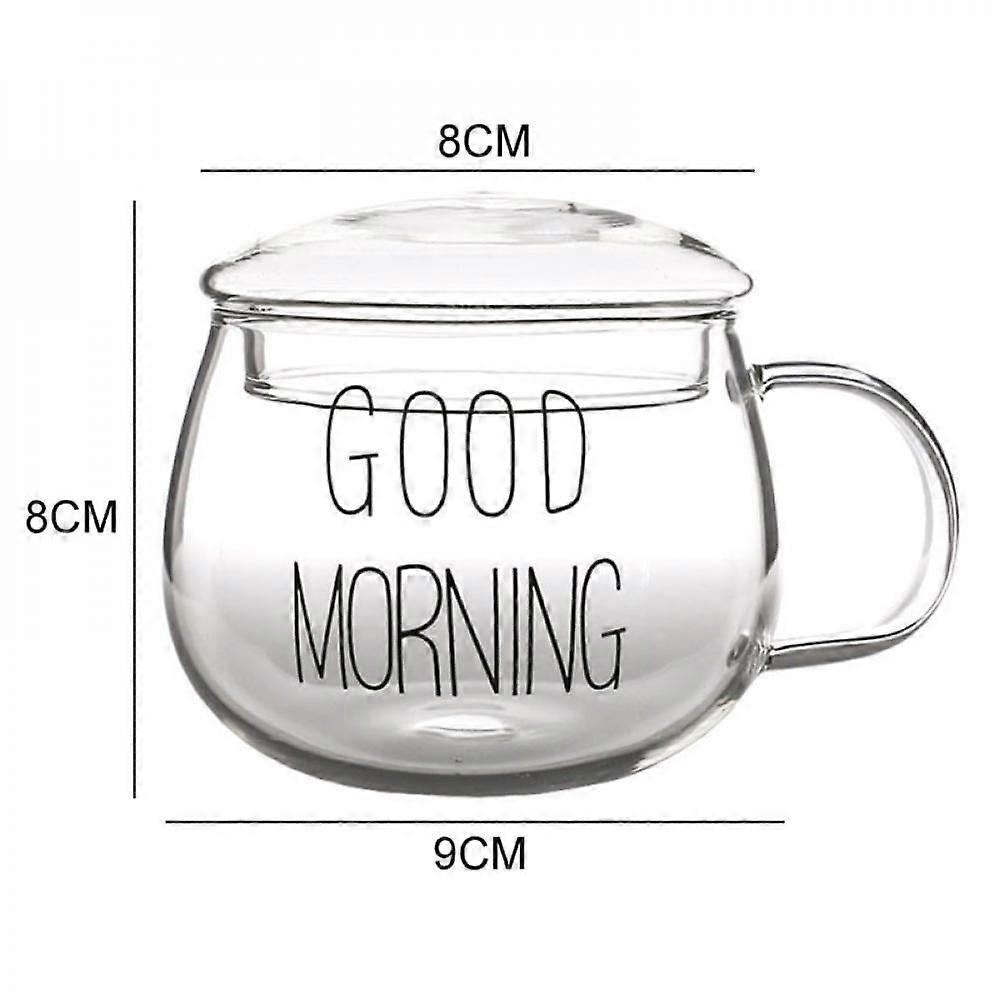 Pretty Comy 350ml Heat-Resistant Glass With Handle Milk Mug Breakfast Cup Microwave Mug Round Fun Single Cup White Letter With Round Lid Black
