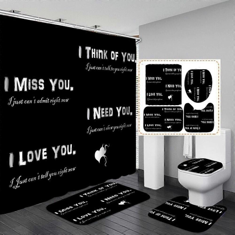 Pretty Comy 4PCS Curtain Sets With Rugs Waterproof Polyester Fabric Bathroom Curtains + Bath Rugs Toilet Mat Toilet Lid Rug