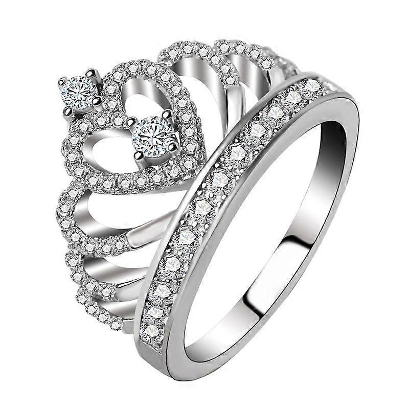 Princess Queen Crown-shaped Platinum Plated Zircon Ring, US Size: 5, Diameter: 15.7mm, Perimeter: 49.3mm(Silver)