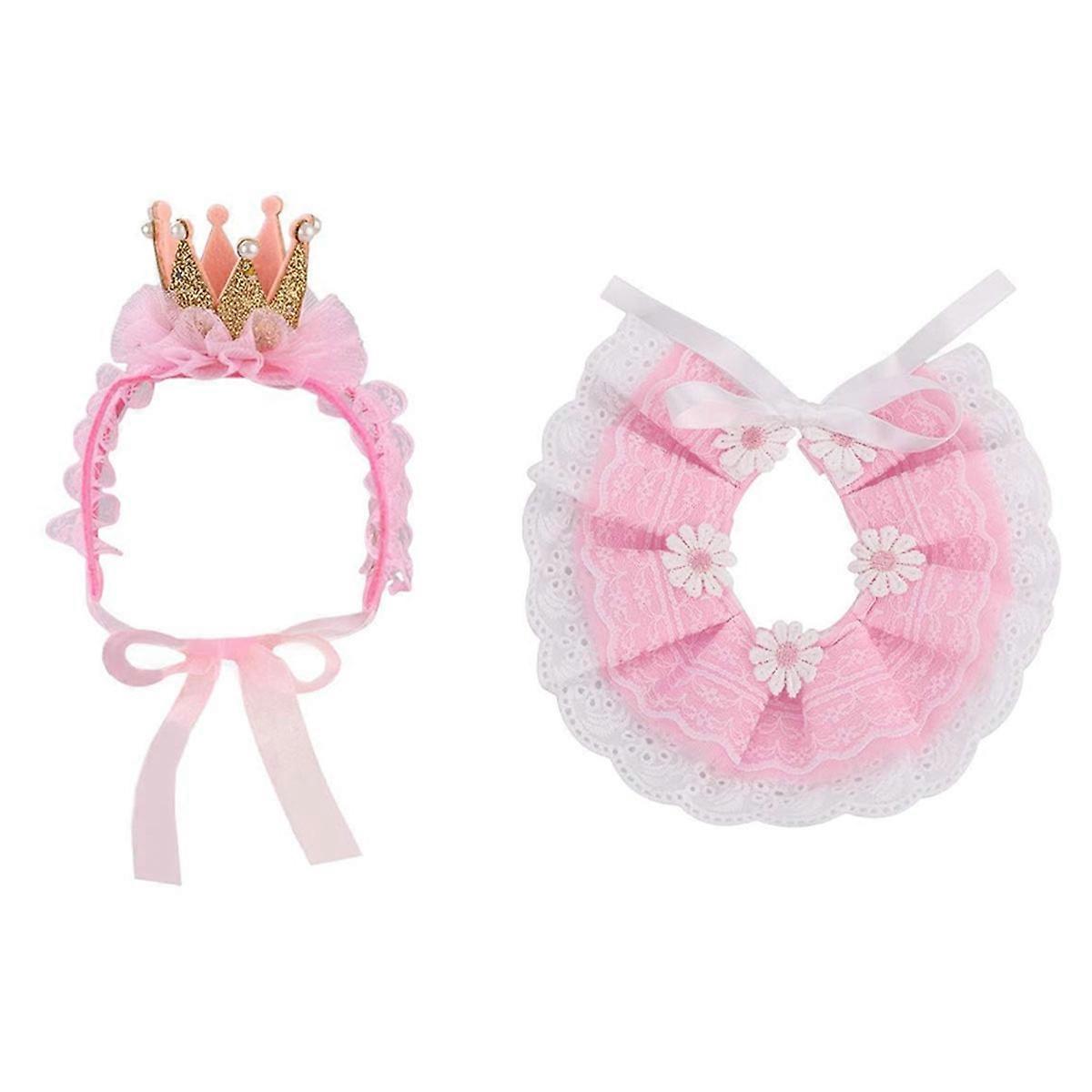 Princess Costumes Cute Lace Crown Accessories for Cats Small Dogs, Pink Outfit for Birthday Party