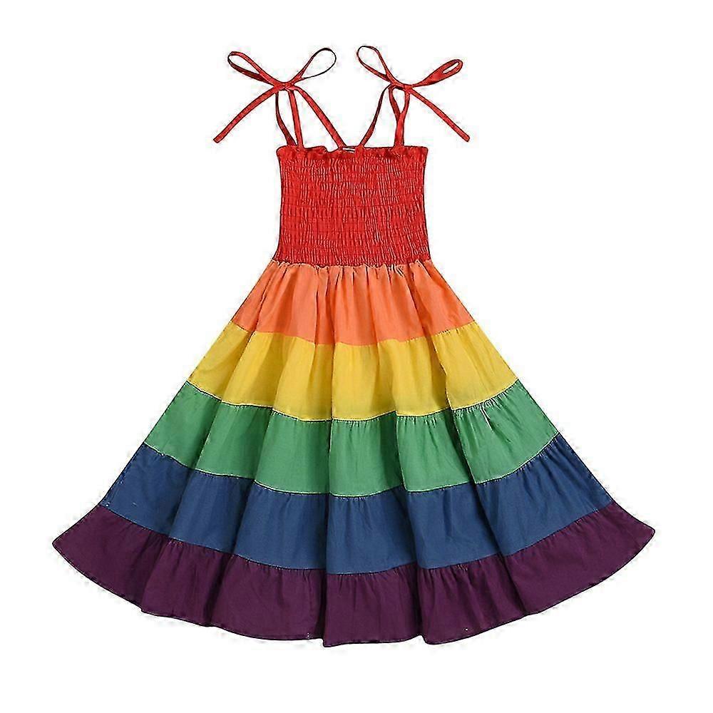 Princess Dress, Toddler Baby Girls Rainbow Dress Princess Sleeveless Halter Beach Tutu Sundress for Party Holiday Photography Costume